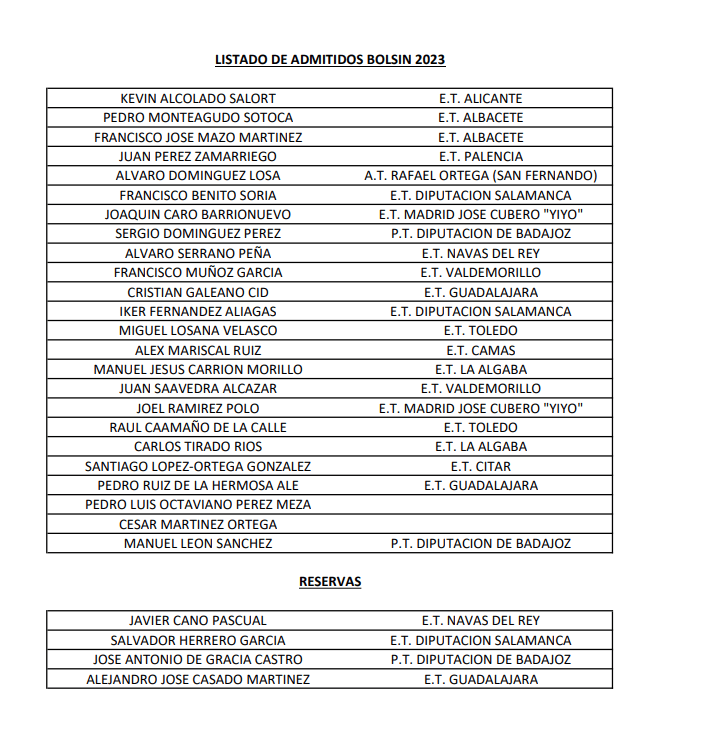 LISTADO DE ADMITIDIOS AL XIII Gran Bolsín Taurino Villa de Candeleda 2023