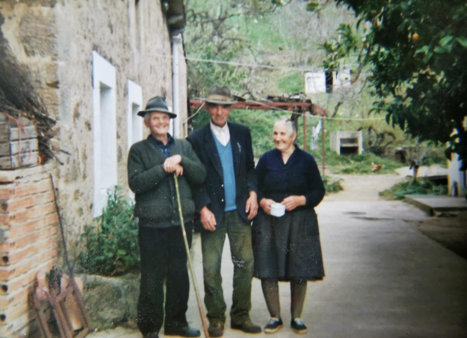 - Pascuala, con su marido y un familiar en su finca de La Sayuela, en El Raso, hace 25 años.