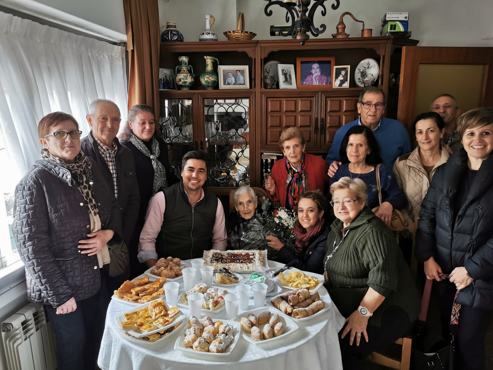 - Pascuala rodeada de familiares y amigos en el día de su 100 cumpleaños.